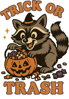 Trick or Trash Raccoon Halloween DTF Transfer - Funny Witch Hat Design