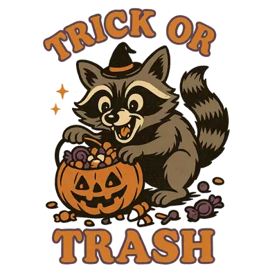 Trick or Trash Raccoon Halloween DTF Transfer - Witch Hat & Pumpkin