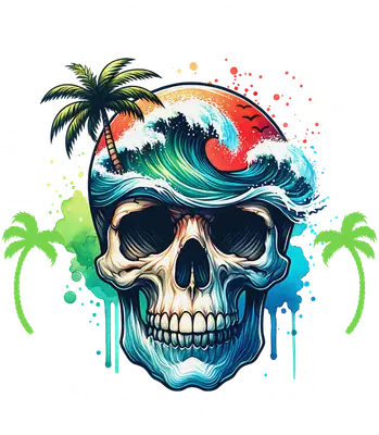 Tropical Skull Ocean Wave DTF Transfer - Courage & Surf Vibe
