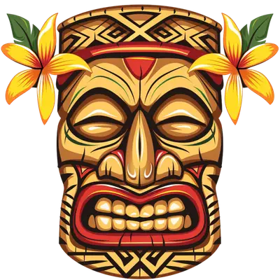 Tropical Tiki Mask DTF Transfer with Plumeria Flowers