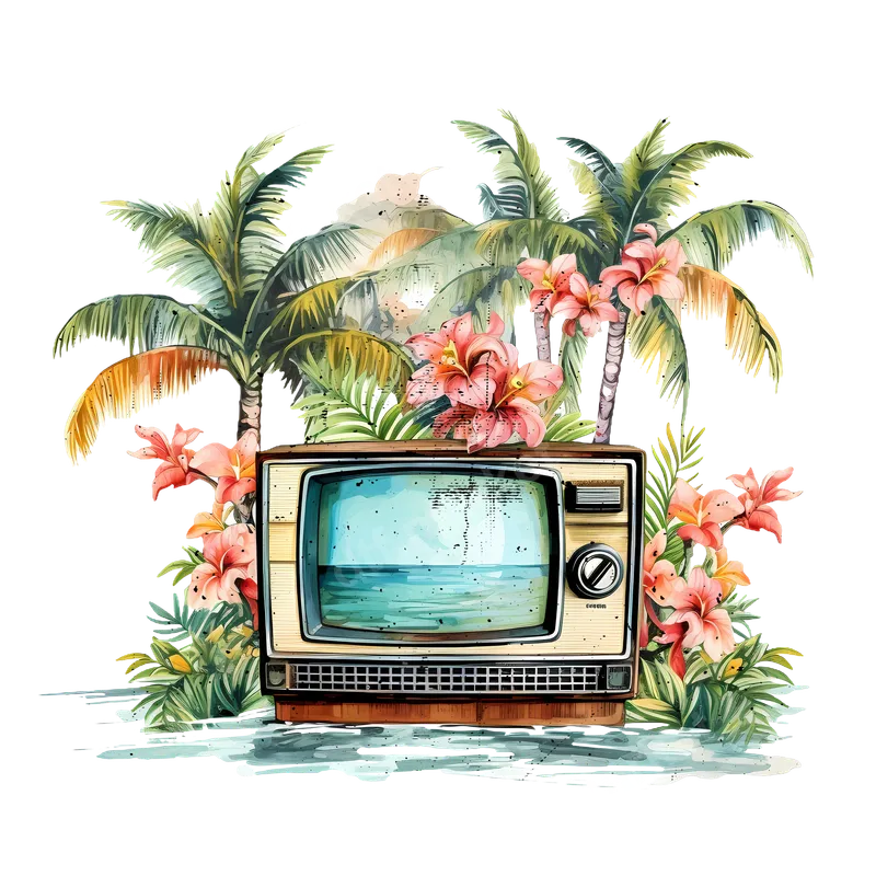 Tropical Vintage TV DTF Transfer | Retro Palm Tree Hibiscus Design