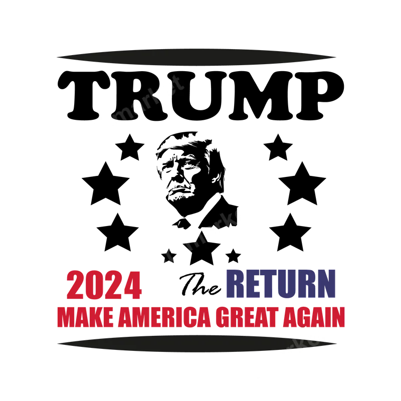 See allThis impactful ready to press DTF transfer proudly displays the "TRUMP 2024 The RETURN" message, centered around a striking silhouette of Donald Trump, encircled by stars. Below, "MAKE AMERICA GREAT AGAIN" is prominently featured, all in patriotic red, white, and blue tones. This design captures the spirit and message for supporters, making a clear statement. It's a vibrant and durable DTF transfer perfect for personalizing your apparel. This design is ideal for staunch Trump supporters, conservative voters, and Republican party members looking to showcase their allegiance. It’s perfect for wearing to election rallies, political campaigns, voting events, or during patriotic holidays like the 4th of July. It also makes an excellent gift for like-minded friends or family members who are passionate about the upcoming 2024 election and the MAGA movement. Applying this heat transfer is effortless. Our premium direct to film transfers work seamlessly on cotton, polyester, and various fabric blends. For best results, use a heat press at 280-300°F (138-149°C) for 6-10 seconds with medium pressure, then perform an instant hot peel. This iron on transfer requires no weeding, saving you time and effort compared to traditional vinyl. Full detailed instructions are included with every order. Experience superior quality with every t-shirt transfer. Our professional-grade DTF prints boast incredibly vibrant colors, exceptional durability, and are designed to be crack-resistant, ensuring your message stays bold and clear wash after wash. The soft-to-touch finish ensures maximum comfort, making it a favorite for everyday wear. You're getting a top-tier apparel transfer that truly stands out.