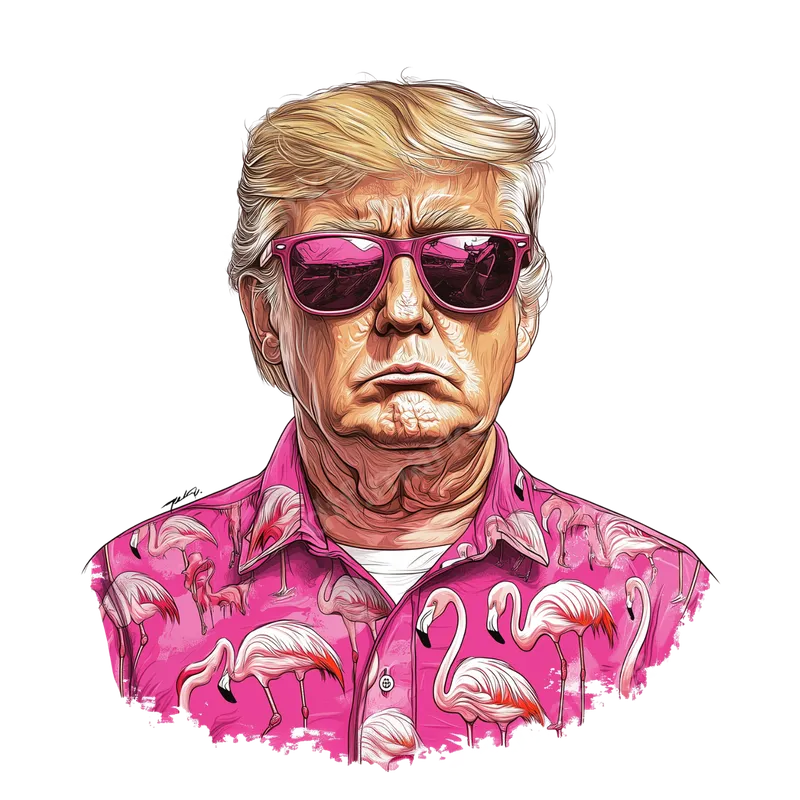 See allUnleash a unique blend of political humor and tropical flair with this eye-catching DTF transfer. Featuring a stylized illustration of Donald Trump wearing vibrant pink flamingo-patterned sunglasses and a matching pink flamingo shirt, this design brings an unexpected and amusing twist to political satire. The detailed artwork captures a stern yet playful expression, making it a standout piece. It's a truly ready to press transfer, designed for effortless application on your chosen garments. This funny political heat press design is perfect for anyone with a bold sense of humor or an appreciation for satirical art. Ideal for political enthusiasts, meme collectors, or anyone looking to spark a conversation, it makes an excellent gift for friends and family who enjoy unique, personality-driven apparel. Great for casual wear, themed parties, political events, or just making a statement wherever you go with a custom shirt design. Applying this iron on transfer is straightforward and hassle-free. Our high-quality designs work flawlessly on a wide variety of fabrics, including cotton, polyester, and their blends. For best results, use a heat press at 280-300°F for 6-10 seconds with medium pressure, then peel instantly. A household iron can also be used with careful application. Forget about tedious weeding, unlike traditional vinyl transfers; this apparel transfer is truly ready to apply right out of the package, saving you time and effort. Experience premium quality with every application. Our DTF transfers boast incredibly vibrant colors that pop, ensuring your finished garment looks professional and eye-catching. The designs are crack-resistant, ensuring longevity and durability through many washes. Enjoy a soft-to-the-touch finish that feels comfortable against the skin, unlike bulky alternatives. Each heat press ready design is made using professional-grade DTF film with a strong, reliable adhesive for a lasting impression.