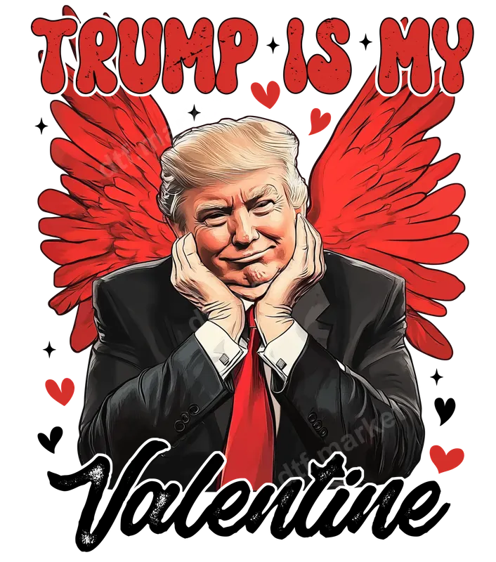 See allShow your affection (or your humorous side) with this "Trump Is My Valentine" DTF transfer. This playful design features Donald Trump with charming red cupid wings, surrounded by hearts, and bold text declaring "TRUMP IS MY Valentine." It's a vibrant, ready to press transfer that's sure to spark conversations and smiles, making a unique statement on any garment. This distinct heat transfer is perfect for Trump supporters, political humor enthusiasts, or anyone looking for a truly unforgettable Valentine's Day gift. Ideal for casual wear, political gatherings, or just to express a bold personality, this iron on decal adds a touch of lighthearted political commentary to your wardrobe. Make a statement or give a one-of-a-kind present that stands out from typical Valentine's offerings. Applying this apparel transfer is straightforward. Our high-quality DTF transfers are compatible with a wide range of materials, including cotton, polyester, and various fabric blends. For best results, use a heat press at 300-325°F for 15 seconds with medium pressure. It can also be applied with a household iron, ensuring consistent, firm pressure. No weeding is required, making application quick and hassle-free. Crafted using premium DTF film and inks, this t-shirt transfer offers exceptional durability and a soft feel. The colors are incredibly vibrant and designed to resist cracking and fading, ensuring your heat press design looks fantastic wash after wash. Enjoy professional-grade results that bring your creative vision to life with ease.