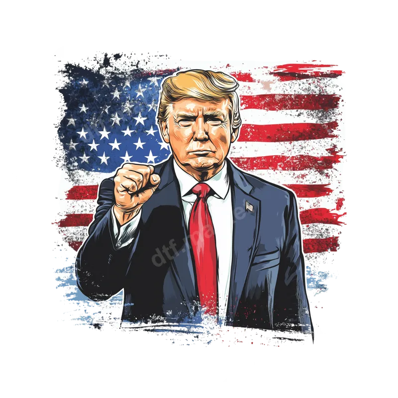 See allShow your unwavering support with this striking Donald Trump DTF transfer, featuring a powerful depiction of the former President in a suit and red tie, with a resolute clenched fist, against a distressed American flag. This high-quality direct to film transfer makes a strong patriotic and political statement, arriving as a ready to press design for immediate application. This powerful heat press design is ideal for Trump supporters and political enthusiasts looking to express their views with pride. Perfect for customizing apparel for election campaigns, political rallies, debates, or simply as everyday wear. It makes a memorable gift for fellow patriots, offering a unique iron on transfer to personalize their gear. Applying this versatile heat transfer is simple. Designed for various fabrics like cotton, polyester, and blends, it ensures a durable finish. Use a heat press at 280-300°F for 6-10 seconds with medium pressure, then perform an instant peel. No complicated weeding is required, making this a user-friendly custom transfer for all skill levels. A household iron can also be used following careful instructions. Experience professional-grade results with this premium DTF transfer. Our transfers boast vibrant, true-to-life colors that resist cracking and fading, ensuring your design looks fresh. The special DTF film provides a soft, flexible feel that seamlessly integrates with your garment, while its strong adhesive ensures a long-lasting bond. This durable apparel transfer maintains integrity through washes, making it a reliable choice for custom clothing.