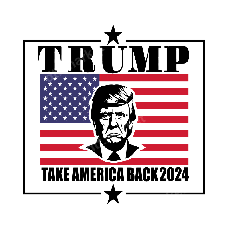 See allThe design features a striking image of Donald Trump's face set against a bold American flag. Above, the word "TRUMP" is prominently displayed, while below, "TAKE AMERICA BACK 2024" declares a clear message for the upcoming election. This powerful and patriotic DTF transfer is ready to press, offering a vibrant way to express political views and support for the 2024 campaign. This direct to film transfer is perfect for avid political supporters, conservative voters, and anyone looking to proudly display their patriotism and support for Donald Trump. Ideal for election rallies, political events, Fourth of July celebrations, or everyday wear, it makes a powerful statement. It's also an excellent gift idea for fellow conservatives, family members, or friends who are passionate about the "Take America Back" movement and the 2024 election. Applying this heat press transfer is incredibly easy, suitable for a wide range of fabrics including cotton, polyester, and various blends. For professional results, use a heat press at 280-300°F for 6-10 seconds with medium pressure, then peel instantly. For home users, a household iron can also be used following simple instructions. Unlike vinyl transfers, there's absolutely no weeding required, saving you time and effort to get your apparel ready quickly. Experience superior quality with this durable and crack-resistant apparel transfer. Our professional-grade DTF film ensures vibrant colors and sharp details that stand out, remaining soft to the touch after application. The strong adhesive guarantees long-lasting wear, making your finished garment or accessory a statement piece that holds up wash after wash. Transform your items with a professional-looking, ready to press design that lasts.