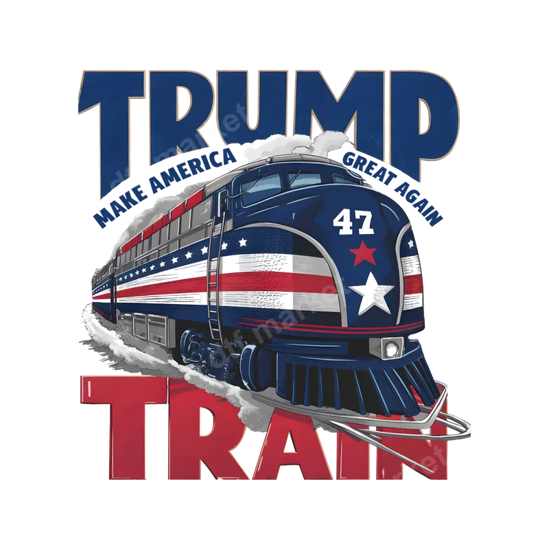 See allThis powerful DTF transfer showcases the iconic "Trump Train" with a patriotic American flag motif. The design features a bold, classic train emblazoned with stars and stripes, prominently displaying "47" on its front, symbolizing future aspirations. Above, the word "TRUMP" is grandly displayed, while "MAKE AMERICA GREAT AGAIN" curves around the train, and "TRAIN" grounds the bottom. This ready to press design is perfect for making a strong political statement on any garment. Ideal for devoted Trump supporters, conservative voters, and anyone passionate about the "Make America Great Again" movement. This versatile heat transfer is perfect for political rallies, campaign events, patriotic holidays like the 4th of July, or simply showing your stance in everyday wear. It also makes a thoughtful gift for fellow patriots and political enthusiasts looking to personalize their apparel. Applying this high-quality iron on transfer is simple and efficient. Use a heat press set to 280-300°F with medium pressure for 6-10 seconds for an instant hot peel. It adheres perfectly to cotton, polyester, and various fabric blends. Unlike traditional vinyl, there's no tedious weeding required, making it a hassle-free solution for professional and home users alike. Our DTF transfers are crafted using premium film and ink, ensuring vibrant colors and exceptional durability. The resulting print is crack-resistant, washable, and boasts a soft, lightweight feel that integrates seamlessly with your fabric. Enjoy a professional-grade shirt design that stands the test of time and proudly displays your message.
