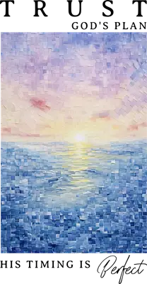 Discover serenity with our 'Trust God's Plan' mosaic ocean sunset DTF transfer. This breathtaking design features a pixelated rendering of a vibrant sunset over tranquil ocean waters, with warm yellows and soft purples blending into rich blues. The uplifting message, "TRUST GOD'S PLAN HIS TIMING IS Perfect," adds a profound spiritual touch, making it a perfect ready to press design for expressing faith and hope. This beautiful iron on transfer is ideal for individuals seeking daily inspiration, Christian youth groups, church members, or anyone who finds solace in faith and natural beauty. It makes a thoughtful gift for friends, family, or mentors on special occasions, or simply as a personal reminder of God's perfect timing. Small business owners creating faith-based apparel will find this heat transfer design an excellent addition to their product line. Applying this heat press transfer is effortless on a variety of fabrics including cotton, polyester, cotton-poly blends, and even nylon. Simply use a heat press set between 300-325°F for 15 seconds with medium pressure, or apply with a household iron. There's no tedious weeding required—just peel and press for instant, professional results. Perfect for custom t-shirts, hoodies, sweatshirts, tote bags, pillow covers, and denim jackets. For lasting durability, wash garments inside out and tumble dry low. Our ready to press transfer ensures vibrant, full-color printing with exceptional detail, capturing every nuance of the mosaic art style. It’s crack-resistant and offers a soft feel, unlike bulky vinyl. Each direct to film transfer is produced on premium DTF film with a robust adhesive backing, guaranteeing a flawless application and a stunning finish that stands the test of time.