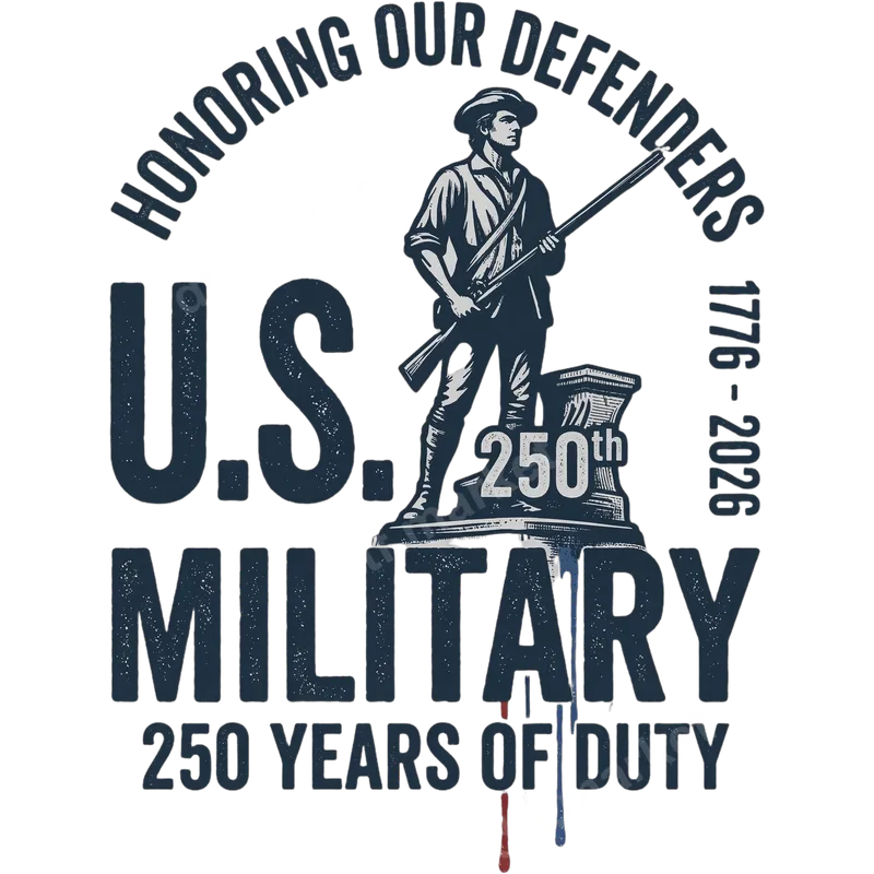 See allCommemorate a monumental milestone with our U.S. Military 250th Anniversary DTF transfer. This powerful design features a classic Minute Man soldier, symbolizing the enduring spirit of American defenders from 1776 to 2026. Bold typography declares "HONORING OUR DEFENDERS" and "250 YEARS OF DUTY," with patriotic red and blue drips adding character. This ready to press design offers a vintage, distressed look perfect for any garment. This patriotic heat transfer is ideal for veterans, active military, and their proud families. It’s also perfect for history enthusiasts and anyone showing respect and gratitude for service. Celebrating Memorial Day, Veterans Day, or the 4th of July, this versatile heat press design makes an impactful statement. It's an excellent gift for those who have served or support our military, ideal for custom shirts or bags. Our high-quality direct to film transfer applies easily to cotton, polyester, and blends. For best results, use a heat press at 300-325°F for 15 seconds with medium pressure, then cold peel. Careful application with a household iron is also possible. These ready to press transfers eliminate weeding, providing a clean, professional finish, making your apparel transfer projects simple and efficient. Experience the superior quality of our DTF transfers. Each image boasts vibrant colors, exceptional detail, and a soft, flexible feel that resists cracking and peeling after multiple washes. Crafted using professional-grade DTF film and strong adhesive, this iron on transfer ensures your design lasts, maintaining its integrity and visual appeal. Create durable, eye-catching apparel that truly honors our defenders with a lasting impression.