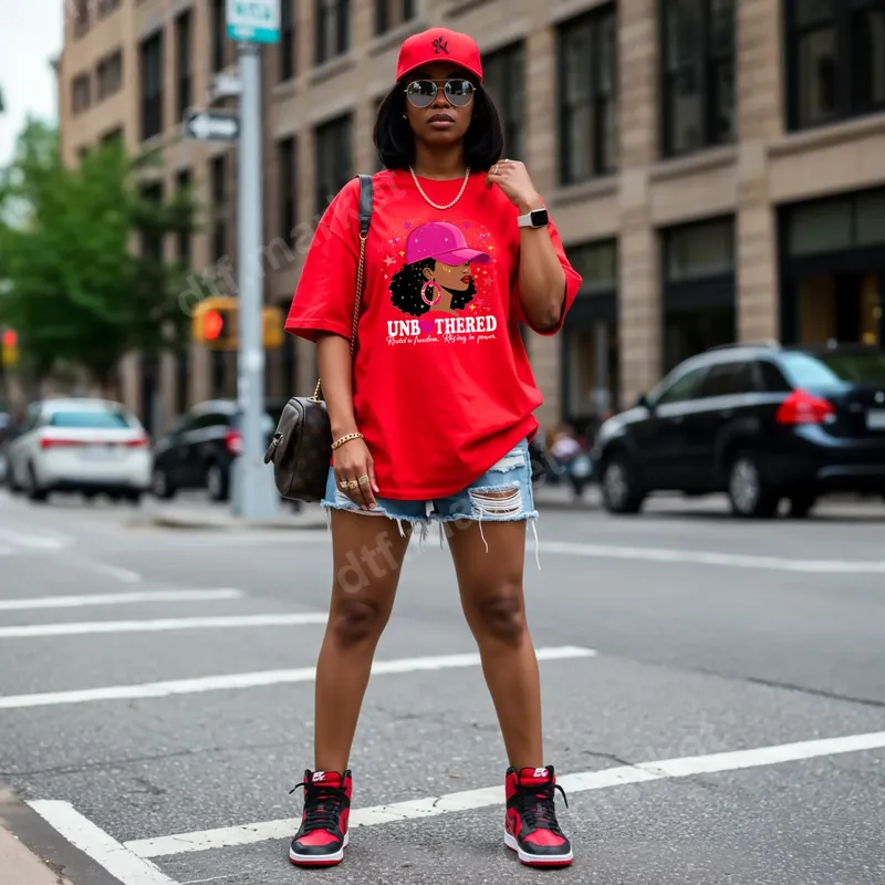 See allThis vibrant UNBOTHERED Black Woman Empowerment DTF transfer features a powerful silhouette of a woman with natural curly hair and a stylish pink cap, radiating confidence and strength. The bold 'UNBOTHERED' text, accented with a heart, is complemented by the inspiring message 'Rooted in freedom. Rising in power.' This ready to press design captures a spirit of self-assuredness and celebrates identity with dazzling glitter and star details, making it a truly eye-catching piece. Perfect for individuals who embrace their strength, advocate for empowerment, or appreciate unique, meaningful apparel. This versatile heat transfer makes an excellent gift for friends, sisters, or mothers for birthdays, holidays, or any occasion to celebrate their unyielding spirit. It's ideal for women who want to make a statement and wear their confidence proudly, suitable for everyday wear or special events, adding a powerful touch to any wardrobe. Our premium direct to film transfers are incredibly easy to apply, compatible with cotton, polyester, and various fabric blends. For best results, use a heat press at 300-325°F for 15 seconds with medium pressure, followed by a cold peel. A household iron can also be used with careful application for smaller projects. Enjoy a professional finish without the hassle of weeding, making custom apparel creation simple and fun for everyone, even beginners. Experience exceptional quality with every application. Our apparel transfer boasts vibrant colors that pop, superior durability that resists cracking and peeling, and a soft, smooth feel on any garment. Crafted with professional-grade DTF film and a strong adhesive, this t-shirt transfer ensures your custom creations look fantastic and last wash after wash. Transform your wardrobe with a design that truly stands out.