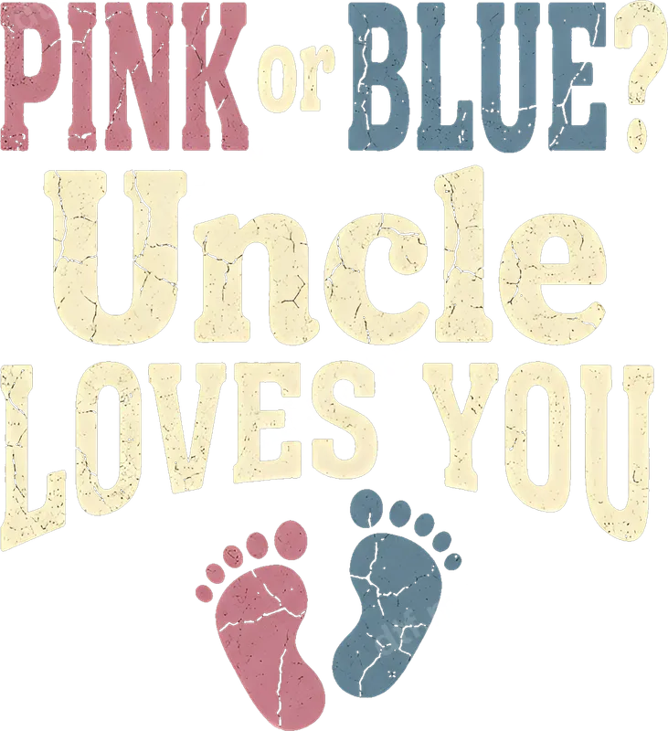 See allThis charming DTF transfer features "PINK or BLUE? Uncle LOVES YOU," with distressed pink and blue baby footprints. The vintage-inspired font adds a rustic, loving touch to this announcement design. It's a perfect ready to press transfer for any uncle eagerly awaiting a new niece or nephew, making it a memorable way to join in a gender reveal or baby shower. This unique heat transfer is ideal for expectant uncles, family, or friends celebrating a new baby. Perfect for gender reveal parties, baby showers, pregnancy announcements, or as a thoughtful gift for the soon-to-be uncle. Imagine him proudly wearing this shirt, showing his love and anticipation. It's also a great iron on decal for creating custom apparel for family gatherings. Our high-quality DTF transfers are designed for easy application on a wide range of fabrics, including cotton, polyester, and cotton/poly blends. Achieve professional results using a heat press at 300-325°F for 15 seconds with medium pressure, followed by a cool peel. For home users, this versatile heat press design can also be applied with a household iron, ensuring a smooth, no-weeding process. Experience superior quality with our direct to film transfers. Each design boasts vibrant colors, excellent crack resistance, and a soft-to-touch finish that feels like part of the fabric. Crafted using professional-grade DTF film and strong adhesive, these heat press ready designs are built to last through countless washes. Elevate your apparel with a durable and high-definition shirt design.