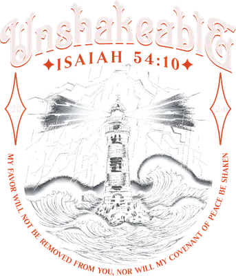Unshakeable Isaiah 54:10 Lighthouse Stormy Sea DTF Transfer