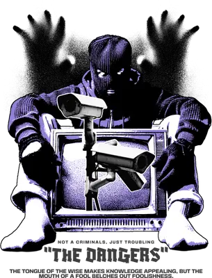 This striking DTF transfer captures a raw, urban aesthetic with its powerful imagery. It features a figure in a balaclava, seated contemplatively before an old CRT television, within which two watchful CCTV cameras are depicted. Ominous shadowy hands emerge from behind, adding a layer of unease, while bold text declares "THE DANGERS." The design's gritty texture and stark black, white, and purple palette create a thought-provoking visual narrative. This ready to press design is a statement piece for anyone drawn to themes of observation, anonymity, and societal critique. Perfect for streetwear enthusiasts, artists, activists, and those who appreciate designs with a deeper social commentary. This iron on transfer makes an ideal gift for individuals who express themselves through edgy fashion, or for small independent brands looking to create unique merchandise. Use this heat transfer design to craft custom apparel for music events, art installations, or simply to add a bold, expressive touch to your everyday wardrobe. It resonates particularly well with Gen Z and urban subcultures. Applying this high-quality heat press transfer is simple and versatile. It adheres perfectly to a wide range of materials including cotton, polyester, cotton-poly blends, and even nylon. For best results, apply with a heat press at 300-325°F for 15 seconds with medium pressure, or use a household iron with firm, even pressure. There's no tedious weeding required—just peel and press! This versatile apparel transfer is ideal for customizing t-shirts, hoodies, sweatshirts, tote bags, denim jackets, and even skateboard deck art. For lasting durability, wash garments inside out and tumble dry on low heat. Experience superior quality with this ready to press transfer, showcasing vibrant, full-color printing and exceptional fine detail. The result is a crack-resistant image that feels soft to the touch, without the heavy, stiff feel often associated with vinyl transfers. Each direct to film transfer is meticulously printed on premium DTF film, featuring a robust adhesive backing to ensure professional-grade, long-lasting results for all your custom projects.