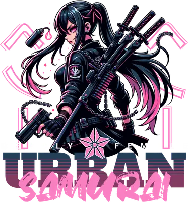 Urban Samurai Anime Girl DTF Transfer | Cyberpunk Warrior Heat Press Design