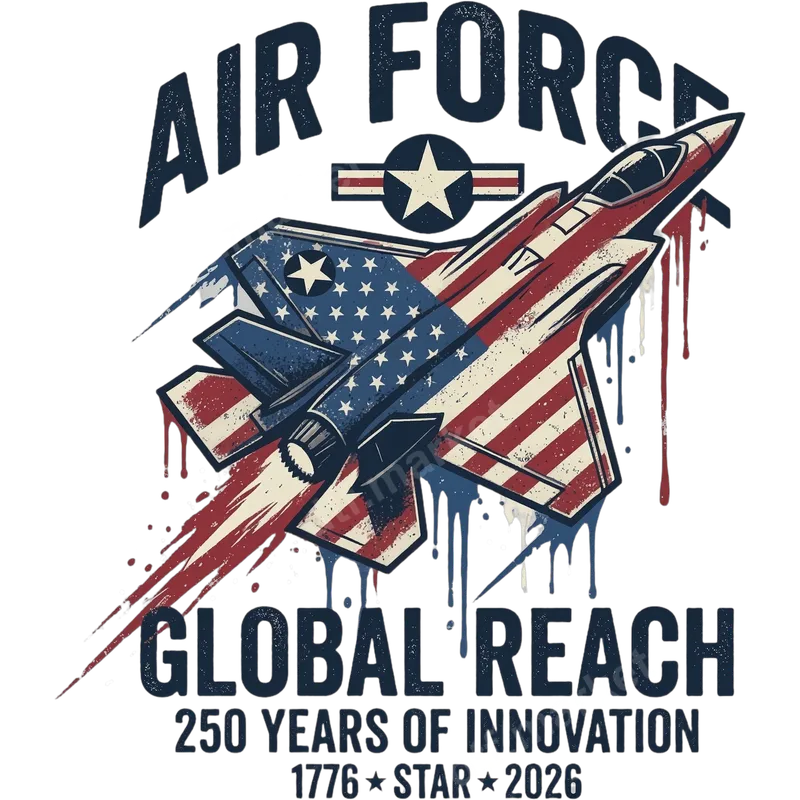 See allThis striking DTF transfer features a powerful F-16 fighter jet soaring through the sky, boldly adorned with the American flag's stars and stripes. The design has a distressed, patriotic aesthetic, highlighted by paint drip effects and classic US Air Force insignia. Below the dynamic jet, the text 'GLOBAL REACH' and '250 YEARS OF INNOVATION 1776 ★ STAR ★ 2026' commemorate historical significance and military strength. This ready to press transfer is perfect for creating impactful apparel. Ideal for US Air Force personnel, veterans, military families, and patriotic Americans, this design makes a powerful statement. It's perfect for celebrating national holidays like the 4th of July, Memorial Day, and Veterans Day. This heat press design also makes an excellent gift for aviation enthusiasts, history buffs, or anyone who appreciates military heritage and American pride. Wear it to air shows, family reunions, or everyday to show your unwavering support. Applying this professional quality direct to film transfer is straightforward and hassle-free, suitable for a wide range of fabrics including cotton, polyester, and their blends. For best results, use a heat press at 300-325°F for 15 seconds with medium pressure, then peel cold. If using a household iron, ensure even, firm pressure. Unlike traditional vinyl transfers, there's no tedious weeding required, making your custom apparel projects quicker and easier. Our premium DTF transfers boast vibrant, true-to-color reproduction that truly pops on any garment. Engineered for durability, these transfers are crack-resistant and designed to withstand numerous washes, maintaining their integrity and bold appearance. The soft-touch finish ensures comfort, making it feel like part of the fabric. Each heat press ready design is printed on professional-grade DTF film with a strong adhesive, ensuring a lasting and high-quality finish for your custom creations.