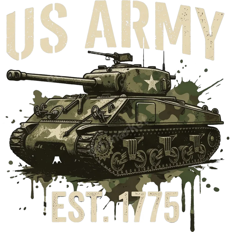 See allThis striking DTF transfer features a powerful US Army tank, adorned with authentic camouflage and the iconic star emblem, set against a backdrop of military green splatters. Above, "US ARMY" is emblazoned in a distressed, stencil-like font, with "EST. 1775" proudly displayed below, marking the founding year. This rugged and patriotic design is a ready to press transfer, perfect for honoring military service and showcasing American pride with a vintage, battle-hardened aesthetic. This versatile heat transfer is ideal for veterans, active duty service members, military families, and patriotic supporters looking to express their respect and allegiance. It’s an excellent choice for special occasions like Veterans Day, Memorial Day, Fourth of July, or even everyday wear. Gift this unique iron on decal to a loved one who serves or has served, or create custom apparel for military reunions, support groups, and patriotic events. Our direct to film transfer is designed for effortless application on a wide range of fabric types, including cotton, polyester, and various blends. Achieve professional results using a heat press at 300-325°F for 15 seconds with medium pressure, followed by a cold peel. For smaller projects or home use, a household iron can also be utilized, making this custom transfer incredibly convenient. Forget about weeding – simply press and peel! Experience superior quality with this heat press design. Crafted using professional-grade DTF film, our transfers boast vibrant colors, exceptional detail, and a soft, comfortable feel on any garment. The durable inks are crack-resistant and built to withstand countless washes, ensuring your apparel transfer maintains its integrity and sharp appearance over time. Our strong adhesive guarantees a long-lasting bond to your chosen fabric.