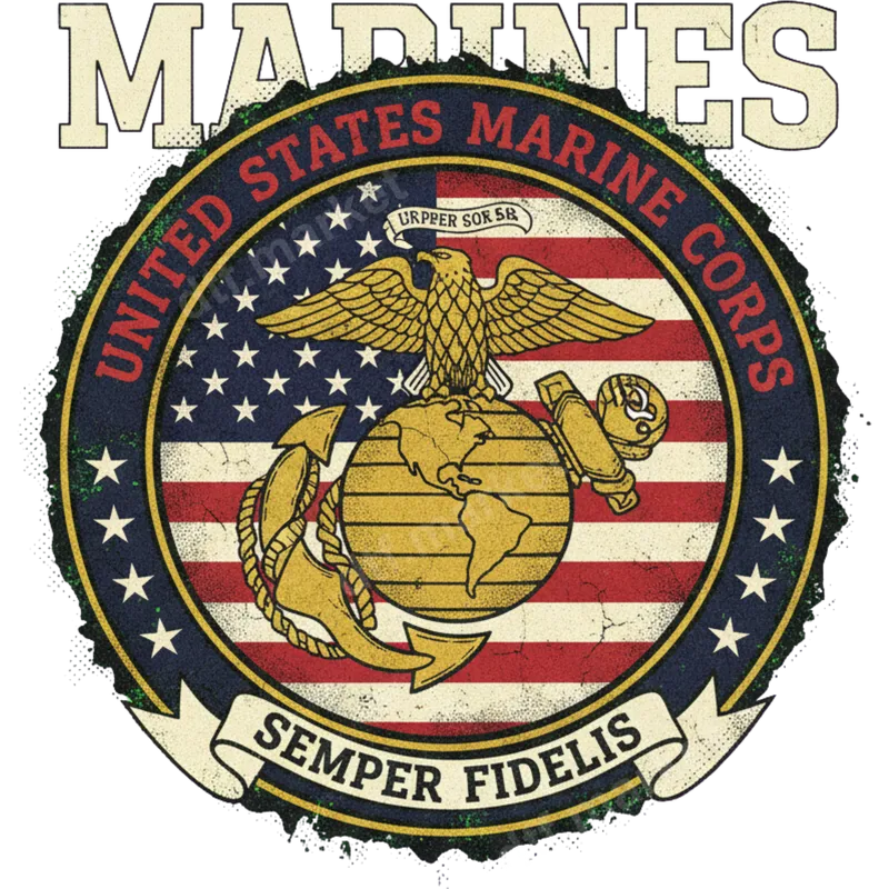 See allThis impactful design showcases a distressed vintage United States Marine Corps emblem, prominently featuring the iconic Eagle, Globe, and Anchor (EGA) against an American flag backdrop. Encircling the imagery are the words "UNITED STATES MARINE CORPS," with "MARINES" boldly above and "SEMPER FIDELIS" on a banner below. This high-quality DTF transfer perfectly captures the honor and tradition of the USMC, offering a unique, ready to press design. Ideal for active duty Marines, proud veterans, military families, and dedicated supporters, this apparel transfer is a fantastic way to display your allegiance. It's perfect for patriotic holidays like Veterans Day, Memorial Day, and the 4th of July, or as a meaningful gift for Marine Corps birthdays, reunions, and celebrations of service. Easily create custom shirt designs for yourself or loved ones. Applying this vibrant heat press transfer is straightforward. It adheres beautifully to cotton, polyester, and blends, making it versatile for almost any garment. For best results, use a heat press at 300-325°F for 15 seconds with medium pressure, then cold peel. A household iron can also be used. No weeding or layering is required, unlike traditional vinyl transfer options. Crafted with professional-grade direct to film transfer technology, this design offers exceptional durability and a premium feel. The colors are incredibly vibrant and will resist cracking or fading, ensuring your Marine Corps pride stays bold wash after wash. The soft-touch finish means your customized apparel will be comfortable to wear, looking professional and feeling great.