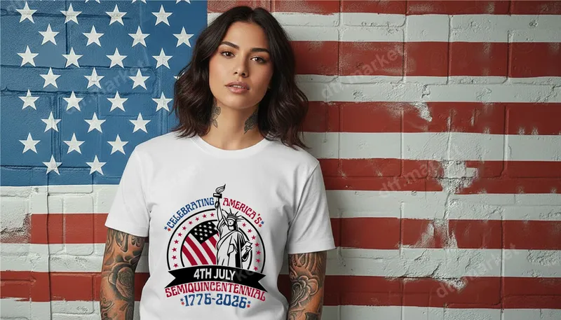 See allCommemorate a significant milestone with our patriotic DTF transfer featuring the iconic Statue of Liberty, framed by an American flag motif and a celebratory banner. This vibrant design proudly proclaims "CELEBRATING AMERICA'S 4TH JULY SEMIQUINCENTENNIAL 1776-2026," marking the 250th anniversary of the United States. It's a high-quality, ready to press design that captures the spirit of freedom and national pride in bold red, white, and blue. This distinct heat transfer is perfect for patriots, history enthusiasts, and anyone looking to show their American pride for the upcoming Semiquincentennial. Ideal for 4th of July celebrations, Memorial Day events, Veterans Day tributes, or simply as a daily display of national spirit. It also makes a thoughtful gift for veterans, service members, and those who appreciate American history and its enduring symbols. Our professional-grade heat press transfer is incredibly versatile, suitable for application on a wide range of fabrics including cotton, polyester, and various blends. Achieve a perfect finish using a standard heat press at 300-325°F for 15 seconds with medium pressure, or apply it effortlessly with a household iron. Best of all, this custom transfer requires no weeding, saving you time and effort. Experience the superior quality of our iron on transfer. Each design is printed with vibrant, long-lasting colors that resist cracking and fading, ensuring your apparel looks great wear after wear. The soft-touch feel and strong adhesive of our premium DTF film guarantee a professional finish that integrates seamlessly with your garments, making it perfect for custom t-shirt transfer projects.