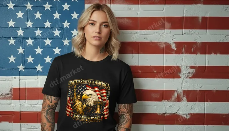 See allThis stunning DTF transfer features a powerful bald eagle, the iconic Statue of Liberty, and the historic Liberty Bell, all set against a vibrant American flag backdrop. Commemorating the "UNITED STATES OF AMERICA 250TH ANNIVERSARY," this ready to press design embodies patriotism and national pride. It's an ideal choice for anyone looking to celebrate a significant milestone in American history with a bold and detailed graphic. This exceptional apparel transfer is perfect for proud Americans, veterans, military families, and anyone who cherishes the nation's rich heritage. It’s an indispensable item for celebrating significant events like the 4th of July, Memorial Day, Veterans Day, Flag Day, or any patriotic gathering. It also makes a thoughtful gift for history enthusiasts, teachers, or family members who appreciate unique American-themed designs. Applying this heat press design is effortless. Our iron on transfer works flawlessly on a wide array of fabrics, including cotton, polyester, and various blends. For best results, use a heat press at 300-325°F for 15 seconds with medium pressure. It can also be applied with a household iron, making customization accessible to everyone. Forget the tedious weeding of vinyl transfers; this ready to press transfer requires no extra steps beyond pressing. Crafted with professional-grade DTF film, this direct to film transfer boasts incredibly vibrant colors and sharp details that truly pop. The durable ink and strong adhesive ensure the design is crack-resistant, peel-resistant, and maintains its brilliant appearance wash after wash. The finished graphic feels soft to the touch, seamlessly integrating with your garment for a high-quality, professional finish that lasts.