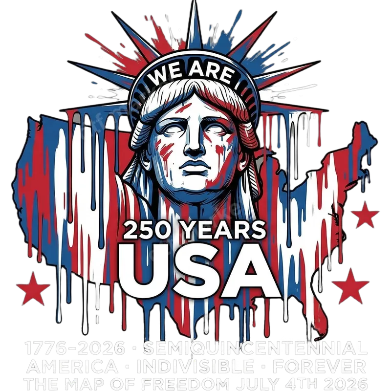 See allThis vibrant DTF transfer proudly commemorates America's upcoming 250th Semiquincentennial in 2026. The striking design features the iconic Statue of Liberty, majestically set against a map of the United States, all boldly rendered in patriotic red, white, and blue, with a dynamic, dripping paint effect. Prominently displaying "250 YEARS USA" and "1776-2026," this ready to press design is a powerful visual tribute to a quarter-millennium of American history and enduring freedom. It’s an ideal choice for anyone looking to honor this significant milestone with a unique apparel transfer. This patriotic heat press transfer is perfect for American history enthusiasts, veterans, active military personnel, and anyone who loves their country. It's an excellent choice for Fourth of July celebrations, Memorial Day, Veterans Day, Election Day, or any patriotic event leading up to the 2026 Semiquincentennial. Create custom t-shirts, hoodies, or caps for family reunions, commemorative events, or as a thoughtful gift for a fellow patriot. Show your pride and anticipation for this historic American anniversary with a distinctive iron on design. Applying this direct to film transfer is straightforward and hassle-free, suitable for both professional heat presses and home irons. It adheres beautifully to a wide range of fabrics including cotton, polyester, and various blends, ensuring versatility for your projects. For best results, use a heat press at 300-325°F for 15 seconds with medium pressure. Unlike traditional vinyl transfers, this ready to press design requires no weeding, making your customization process quick and efficient. Simply press and peel! Our DTF transfers are crafted using professional-grade film and inks, guaranteeing exceptional quality and durability. The colors are incredibly vibrant and will remain eye-catching wash after wash, resisting cracking and fading. The transfer process results in a soft, lightweight feel on the garment, ensuring comfort without a bulky texture. You're getting a premium heat transfer that will make your apparel stand out with a truly professional finish.