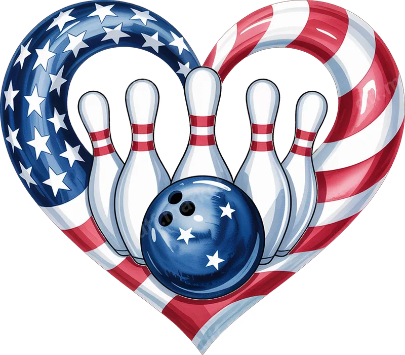 USA Flag Heart Bowling Pins & Ball DTF Transfer