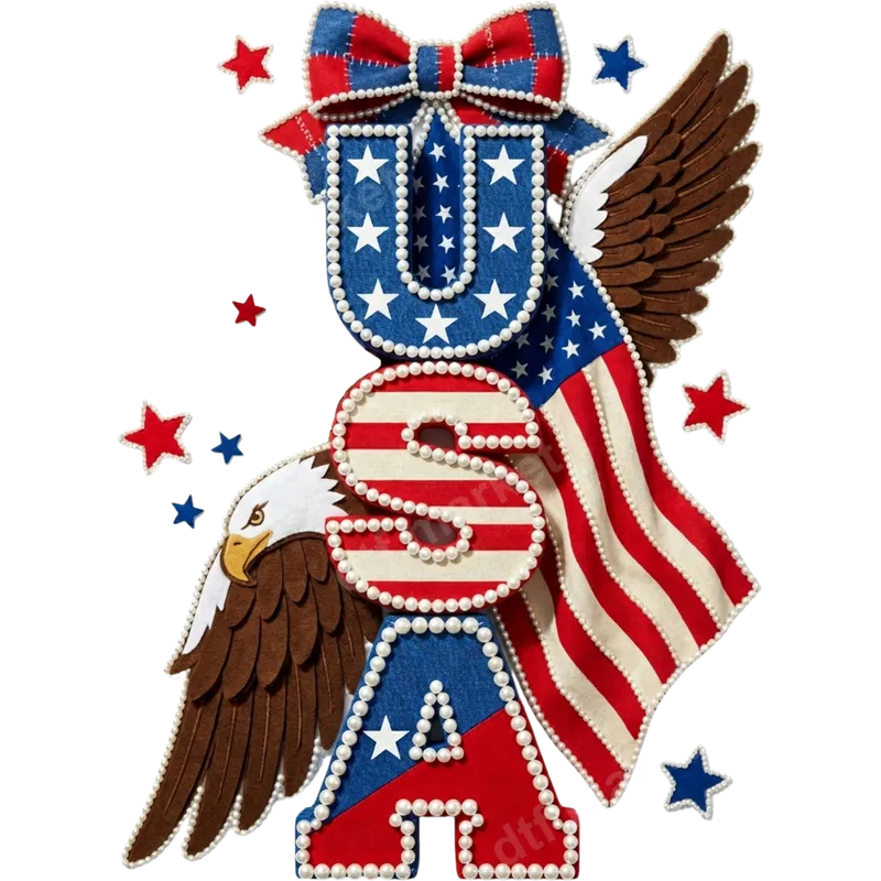 USA Patriotic Pearl Flag & Eagle DTF Transfer for Apparel
