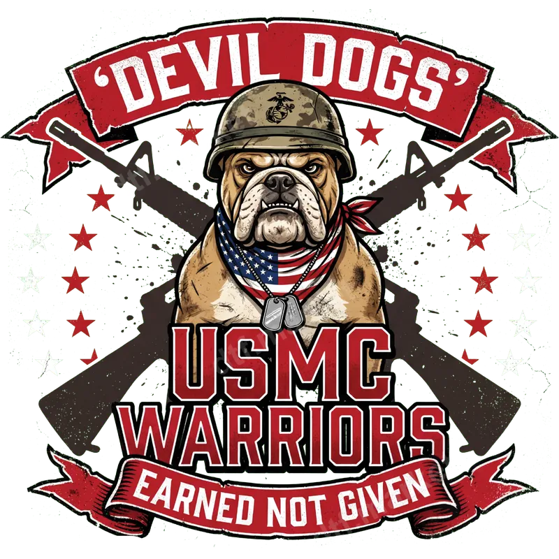 USMC Devil Dogs Warrior Bulldog DTF Transfer Earned Not Given