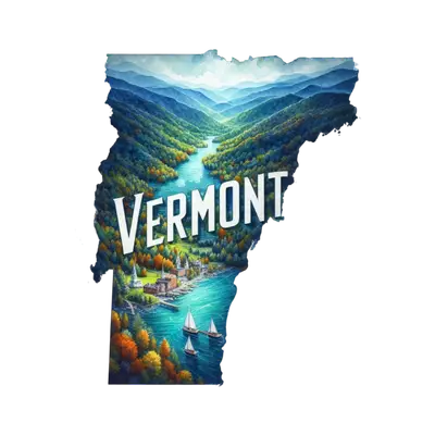 Vermont State Map DTF Transfer - Scenic Mountains & Autumn River Design