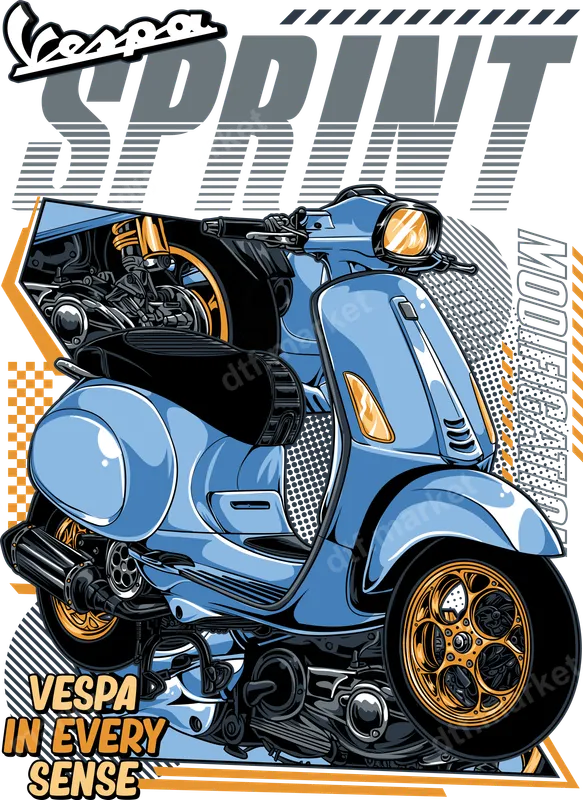 See allShowcase your love for iconic scooters with this highly detailed Vespa Sprint DTF transfer. Featuring a striking blue Vespa Sprint with intricate mechanical details and dynamic graphics including "Sprint" and "Modification" text, this design captures the spirit of customization and classic style. It's a vibrant, ready to press transfer that brings an edgy, retro-futuristic vibe to any garment or accessory. This premium heat press design is perfect for Vespa enthusiasts, scooter riders, motorsports fans, or anyone who appreciates detailed vehicle art and vintage aesthetics. It makes an excellent gift for birthdays, Father's Day, or just to upgrade your everyday wear. Express your passion for these legendary two-wheelers with a unique graphic that stands out in any crowd. Applying this iron on transfer is simple and efficient. It's compatible with a wide range of fabrics, including cotton, polyester, and their blends, making it a versatile t-shirt transfer. Achieve professional results using a heat press at 300-325°F for 15 seconds with medium pressure. For home users, a household iron can also be used. Best of all, there's absolutely no weeding required, saving you time and effort. Our direct to film transfers boast exceptional quality, ensuring vibrant colors that pop and a soft, smooth finish that feels comfortable against the skin. Crafted from professional DTF film with a strong adhesive, these transfers are crack-resistant, wash-durable, and designed to last. Elevate your apparel with a premium apparel transfer that looks professionally printed and retains its stunning detail.