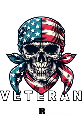 Veteran American Flag Skull DTF Transfer | Patriotic Ready to Press Design