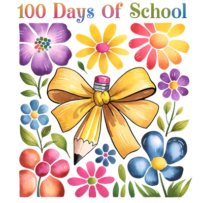 Vibrant 100 Days Of School DTF Transfer | Watercolor Flowers & Pencil Design