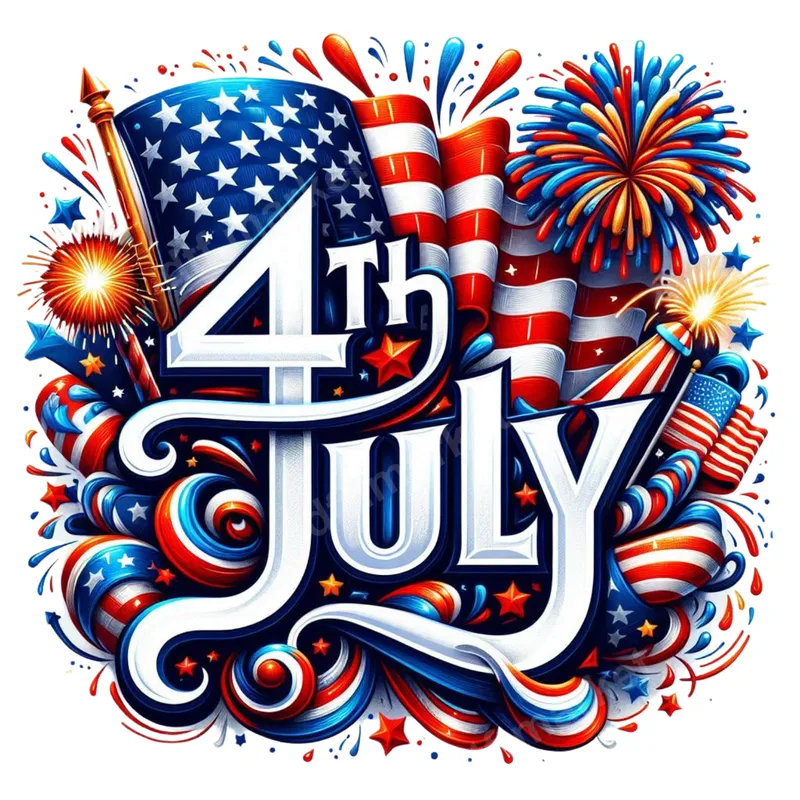 Vibrant 4th of July Celebration DTF Transfer with Flags & Fireworks