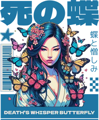 Immerse yourself in vibrant artistry with this stunning DTF transfer featuring a captivating anime-style woman. Her flowing teal hair is adorned with delicate pink cherry blossoms, while a kaleidoscope of colorful butterflies (pink, yellow, and blue) surrounds her, creating a mystical and ethereal scene. Bold Japanese characters and the intriguing phrase 'DEATH'S WHISPER BUTTERFLY' frame the design, making it a truly unique and ready to press statement piece for any garment. This eye-catching design is perfect for anime enthusiasts, fans of Japanese culture, and anyone seeking to express their unique style through fashion. It makes an exceptional gift for friends or family, and an ideal way for small businesses or Etsy sellers to create distinct merchandise. Whether for everyday wear, an anime convention, or just to add a touch of artistic flair, this versatile iron on transfer is sure to turn heads and spark conversation. Applying this heat press transfer is a breeze on a variety of fabrics including cotton, polyester, cotton-poly blends, and even nylon. Achieve professional results with a heat press (300-325°F for 15 seconds at medium pressure) or a standard household iron. Forget tedious weeding; simply peel and press! It’s perfect for customizing custom t-shirts, hoodies, sweatshirts, tote bags, denim jackets, and even pillow covers. For lasting vibrancy, wash garments inside out and tumble dry low. Experience unparalleled quality with this ready to press transfer. It boasts vibrant, full-color printing with exceptional detail, ensuring every butterfly and hair strand pops with clarity. Our crack-resistant formula provides a soft, flexible feel that won't weigh down your garment like heavy vinyl. Each direct to film transfer is printed on premium DTF film with a robust adhesive backing, guaranteeing professional-grade application and stunning apparel results every single time.