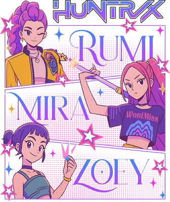 Vibrant Anime Girls HUNTRX Rumi Mira Zoefy DTF Transfer