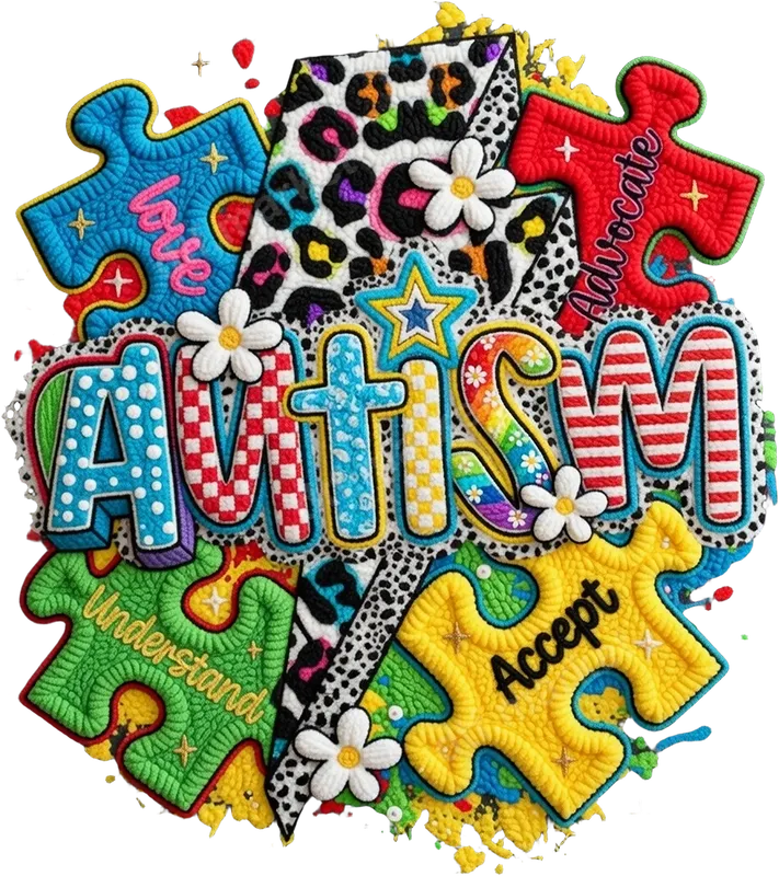 See allThis vibrant DTF transfer showcases a powerful Autism Awareness message, featuring the word "AUTISM" rendered in bold, textured letters, each with unique patterns like polka dots, stripes, and checkerboards. Surrounding the central text are four distinct puzzle pieces, symbols of the autism community, each carrying a vital message: "Love," "Advocate," "Understand," and "Accept." The design is further enhanced with playful leopard print accents, cheerful daisies, and a burst of colorful splatters, creating a truly unique and eye-catching aesthetic. This ready to press design is perfect for creating impactful apparel. This powerful design is ideal for advocates, parents, teachers, and anyone who wants to show their unwavering support for Autism Awareness. Perfect for Autism Acceptance Month in April, awareness walks, community events, or everyday wear to spread understanding. It makes a thoughtful and meaningful gift for a loved one who champions neurodiversity or for personalizing apparel to reflect your commitment to the cause. Use this heat transfer to personalize items for family and friends. Our high-quality direct to film transfer is incredibly versatile and can be applied seamlessly to a wide range of fabrics, including cotton, polyester, and various blends. Achieve professional results with a heat press set at 300-325°F for 15 seconds with medium pressure, followed by a warm peel. For crafters, this iron on transfer can also be applied using a household iron, ensuring accessibility for all. The best part? There’s no tricky weeding required, saving you time and effort. Experience superior quality with every t-shirt transfer from dtf.market. Our DTF transfers are renowned for their vibrant colors that truly pop, exceptional crack resistance, and a soft, smooth feel on any garment. Printed on professional-grade DTF film with a strong, reliable adhesive, these designs are built to last through countless washes, maintaining their integrity and bold appearance. Elevate your apparel with a durable and stunning shirt design that makes a difference.