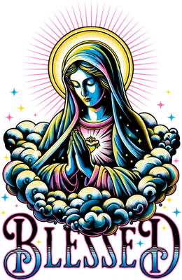 Vibrant Blessed Virgin Mary DTF Transfer - Modern Sacred Heart Design