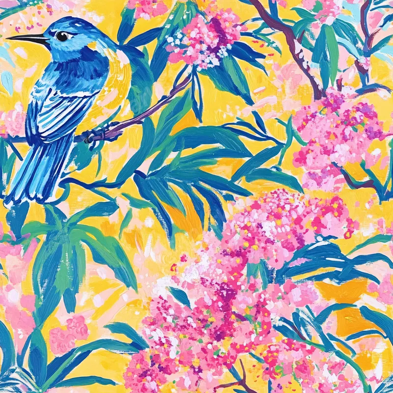 Vibrant Blue Bird & Pink Floral DTF Transfer | Painterly Nature Art Ready to Press