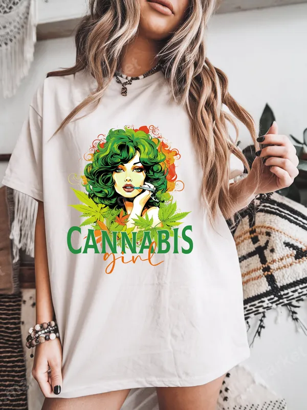 Vibrant Cannabis Girl DTF Transfer | Ready to Press T-Shirt Design
