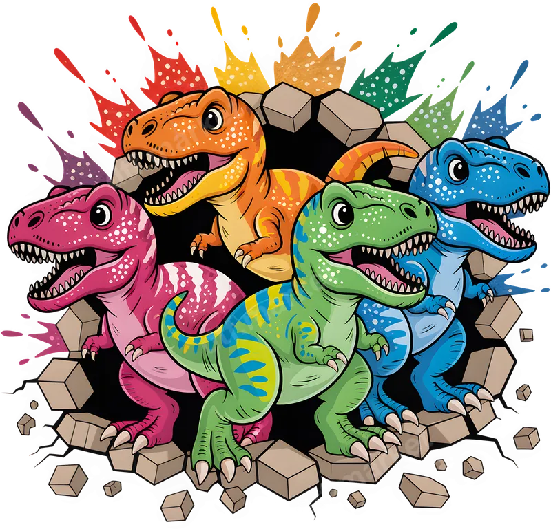 Vibrant Cartoon Dinosaurs Wall Break DTF Transfer