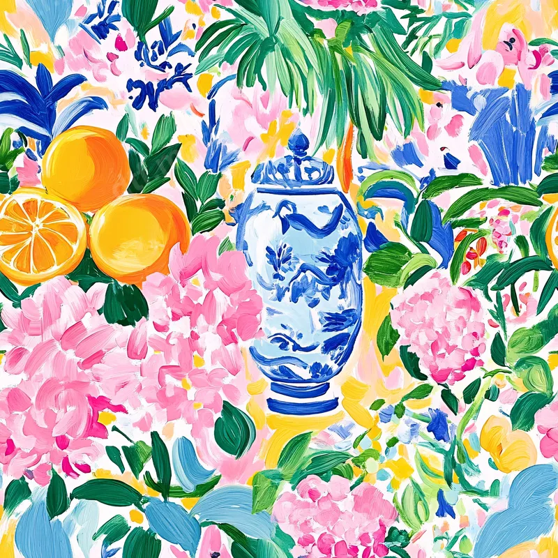 See allThis stunning DTF transfer captures a vibrant, painterly garden scene, bursting with color and preppy charm. Featuring lush pink hydrangeas, fresh oranges, bold green tropical leaves, and a classic blue and white ginger jar, this design brings a sophisticated yet playful botanical aesthetic. It’s a completely ready to press transfer, perfect for adding a touch of elegance to any garment. Ideal for anyone who loves bright, maximalist floral prints, grandmillennial style, or a touch of Southern resort wear flair. This heat press transfer makes a perfect gift for spring, summer, Mother's Day, birthdays, or for refreshing your own wardrobe with a unique iron on transfer. Perfect for boutique owners, crafters, or individuals creating custom apparel. Our high-quality heat press transfers are designed for effortless application. Simply use a heat press at 280-300°F for 6-10 seconds with medium pressure. It's an instant hot peel for a flawless finish. This versatile t-shirt transfer adheres beautifully to a wide range of materials, including cotton, polyester, and their blends. No weeding or intricate layering required, just press and wear. Experience exceptional vibrancy and durability with our professional-grade DTF film. Each design boasts brilliant colors that pop, offering a soft hand feel that won't crack or fade over time. The strong adhesive ensures your custom transfer will last through countless washes, making your creations look professionally made and stand out with lasting quality.