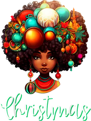 Vibrant Christmas Afro Woman DTF Transfer | Holiday Ornament Hair Design