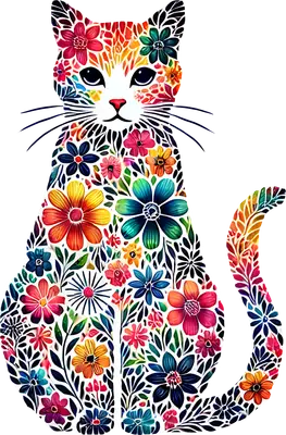 Vibrant Floral Cat DTF Transfer | Colorful Flower Pattern Heat Press Design