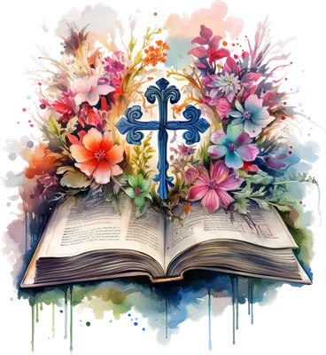 Vibrant Floral Cross Bible DTF Transfer - Watercolor Faith Design