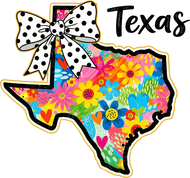 Vibrant Floral Texas DTF Transfer with Cute Polka Dot Bow