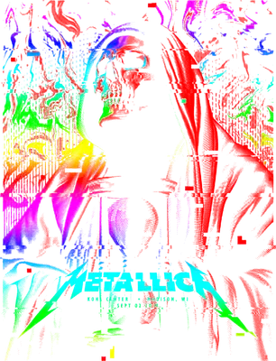 Vibrant Glitch Art Metallica Skull DTF Transfer - Ready to Press