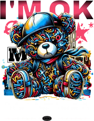 Vibrant Graffiti Teddy Bear 'I'M OK' Streetwear DTF Transfer
