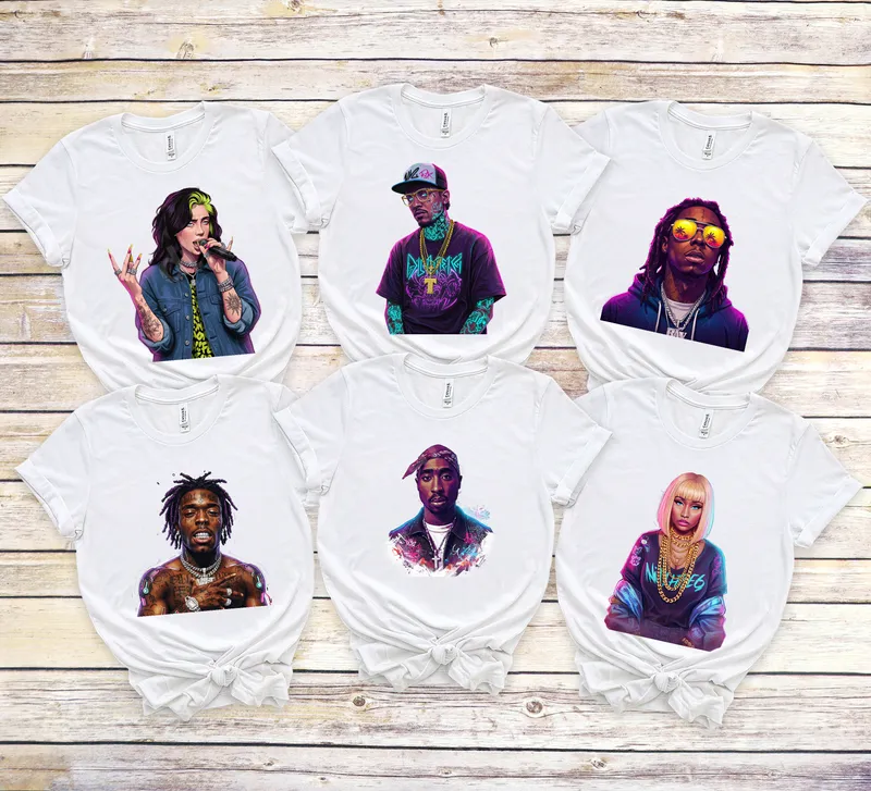 See allThis vibrant DTF transfer collection features stunning portraits of iconic hip hop and pop culture music artists. Each design captures the unique essence and style of beloved legends and contemporary stars, rendered in a modern, neon-infused art style. These high-quality direct to film transfers are ready to press, allowing you to instantly customize apparel with a bold statement. Perfect for music lovers, concert-goers, fans of street art and urban fashion, these heat press designs are ideal for personalizing your wardrobe or creating unique gifts. Whether attending a festival, celebrating a birthday, or expressing passion for hip hop and pop music, these ready to press transfers are a fantastic choice for friends or family. Our professional DTF transfers offer exceptional versatility, adhering beautifully to cotton, polyester, and blends. Applying your shirt design is simple with a heat press: set to 300-325°F, press for 15 seconds with medium pressure, then peel cold. A household iron can also be used. No weeding required, saving time and effort. Experience superior quality with our durable and vibrant heat transfer designs. Each custom transfer is printed on premium DTF film, ensuring incredible color saturation, crisp details, and excellent wash fastness. The transfers are crack-resistant, soft to the touch, and designed for long-lasting wear, elevating your garments with a professional finish.