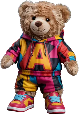 Vibrant Initial 'A' Streetwear Teddy Bear DTF Transfer