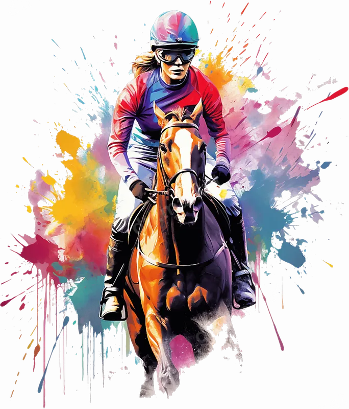 Vibrant Jockey & Horse DTF Transfer - Watercolor Splash Equestrian Design
