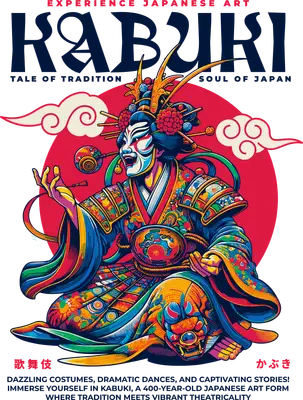 Vibrant Kabuki Performer DTF Transfer - Japanese Art Style